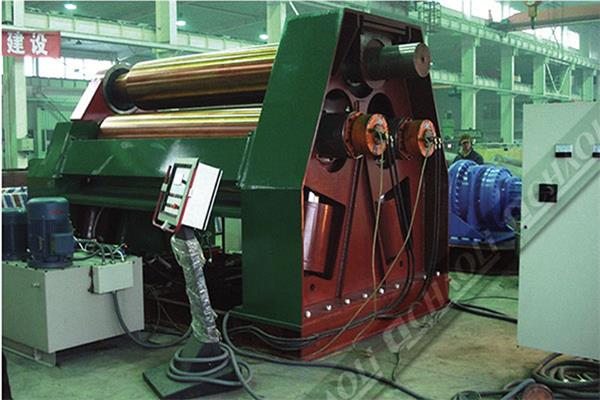 W11H三輥弧線下調式卷板機是引進瑞典先進技術而生產的。能將金屬板料一次上料,不需調頭即可完成板料端部預彎和卷制成形,機器三個工作輥均為主驅動輥。升降位移計算機控制,自動調平,屏幕顯示翻轉軸承體(倒頭)裝有傾倒油缸。