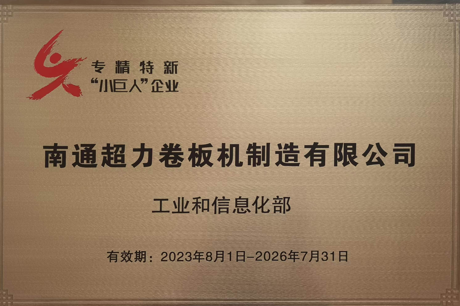 近日,江蘇省工信廳發(fā)布《關(guān)于江蘇省第五批專精特新“小巨人”企業(yè)和第二批專精特新“小巨人”復(fù)核通過(guò)企業(yè)名單的公示》。我們南通超力卷板機(jī)制造有限公司上榜第五批國(guó)家級(jí)專精特新“小巨人”企業(yè)名單。